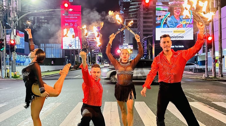 Ofrecemos animación profesional para eventos que impacta y mantiene la energía al máximo. Nuestro servicio incluye shows con fuego, elementos LED, chicas mirror, abanicos, cantantes con personificación de artistas y coreografías temáticas diseñadas según el tipo de evento. Nos encargamos de crear un espectáculo dinámico, visual y bien organizado que sorprende a los invitados y eleva la experiencia de tu celebración.