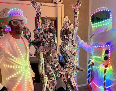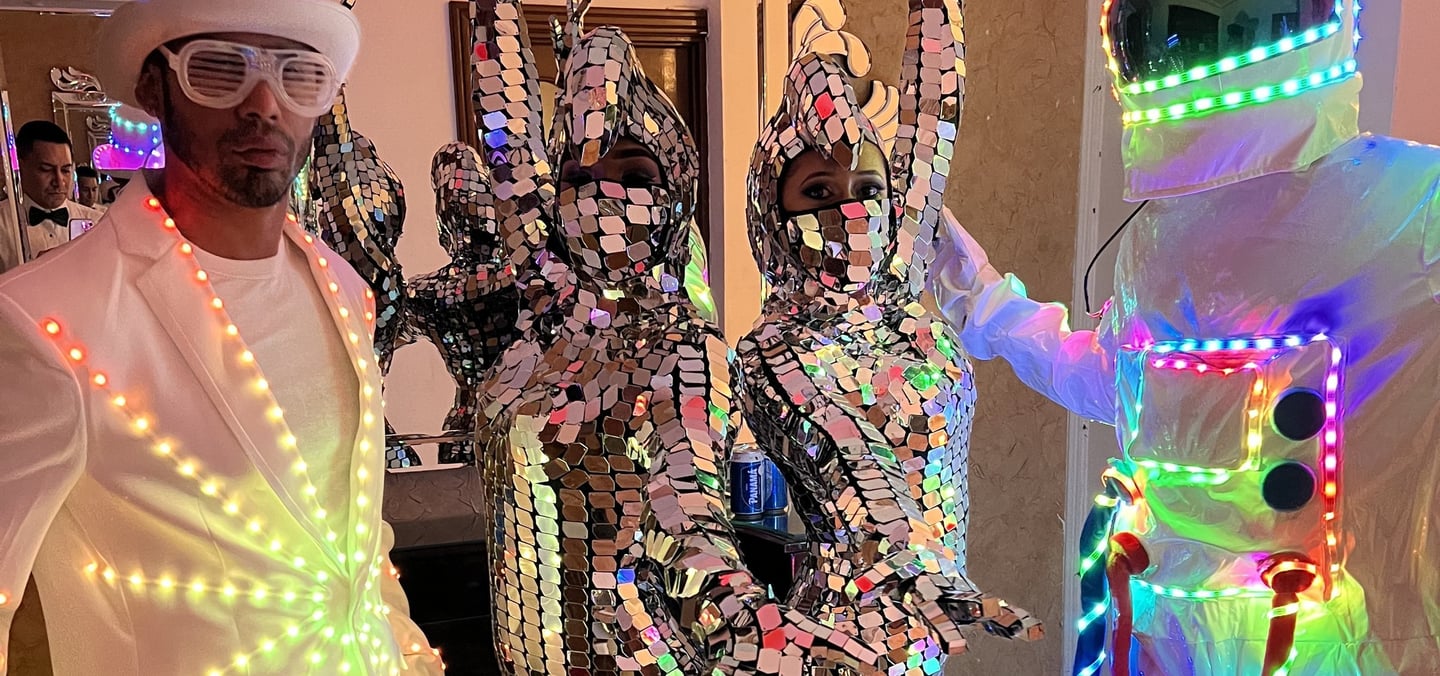 Si prefieres irte por algo más tradicional, divertido y llenar la pista de luces y color, entonces las chicas mirrors y los hombres LED son la opción perfecta para hacer que todos se paren de sus sillas y cerrar la fiesta por todo lo alto.